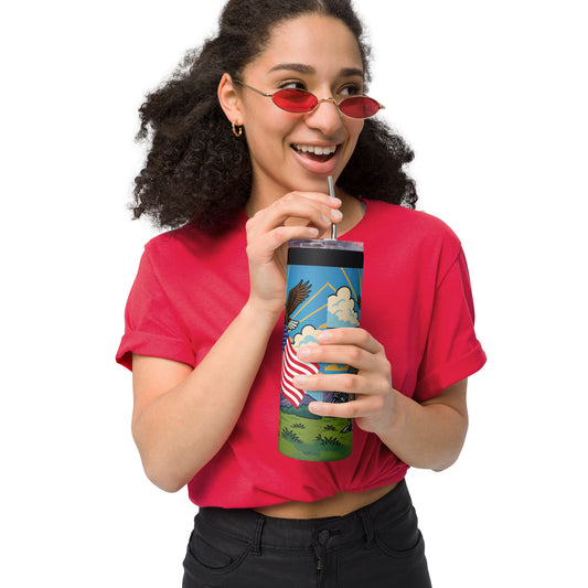 Red, White, and Bolt Tumbler – Bolt Voltage with Eagle & Clouds | Patriotic Independence Drinkware
